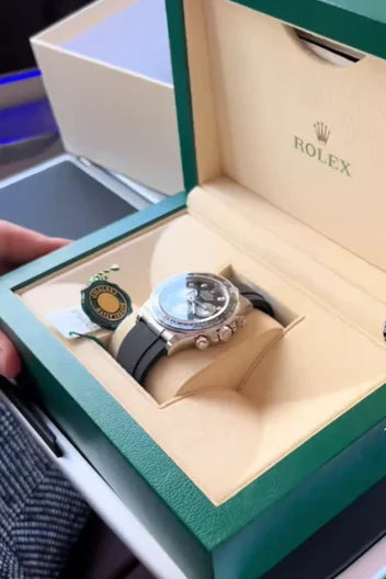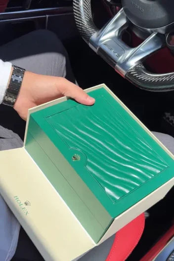 Jede unserer Uhren wird sorgfältig in der authentischen grünen Rolex-Präsentationsbox verpackt – genau wie beim Kauf im Fachhandel.